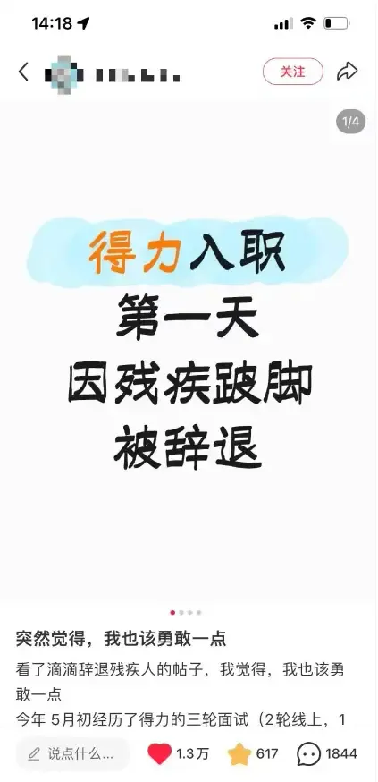 2025年9月,一名腿部有轻微残疾的求职者通过滴滴出行四轮面试、背景调查,获策略运营岗offer。