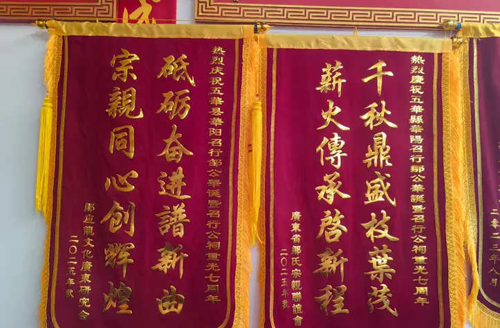 2025年10月3日(农历八月十二日)上午,广东省五华县华阳镇华阳村阳春围寨龙飞凤舞,张灯结彩;欢声笑语,热闹非凡,隆重纪念十四世祖召行邹公诞辰暨祖祠重光七周年庆典活动。