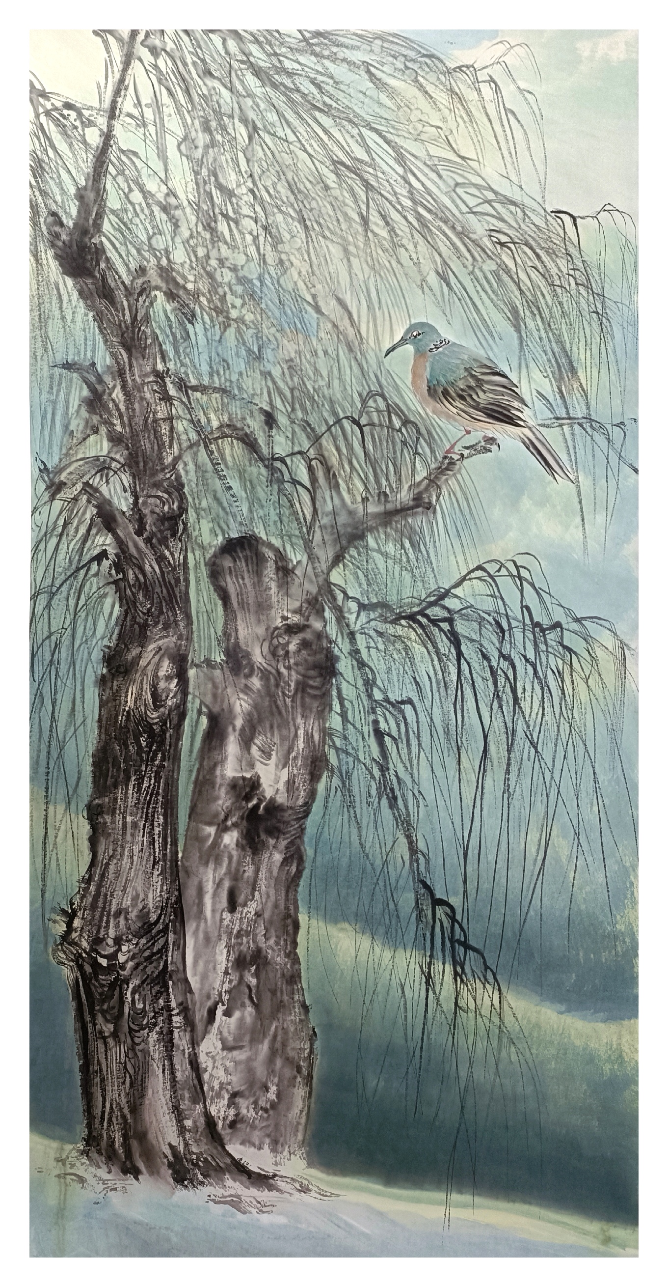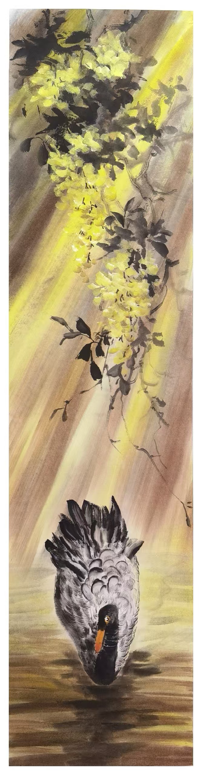 華臣画家艺术探索始终保持着对传统的敬畏与突破的勇气,在技法层面深入研习历代经典的同时,积极吸纳现代构成理念,形成既有古意又具新风的独特画格。画面中那些恣意生长的藤蔓、顾盼生姿的翎羽,既是对生生不息的自然礼赞,亦暗喻着華臣画家对生命本质的哲学思考。这种跨越时空的艺术对话,既延续了文人画的雅致传统,又赋予写意精神以当代文化语境下的全新阐释。