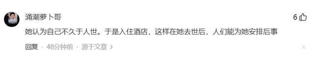 她认为自己不久于人世。于是入住酒店,这样在她去世后,人们能为她安排后事