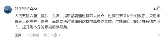 他们无疑是“帮凶”,他们的“病态认可”是她坚持下去的“动力”。那些贩卖“极端健康理念”的网红和博主,真的应该反思自己的言论。对女性身材的苛刻要求,是不是也给年轻人带来了巨大的压力?