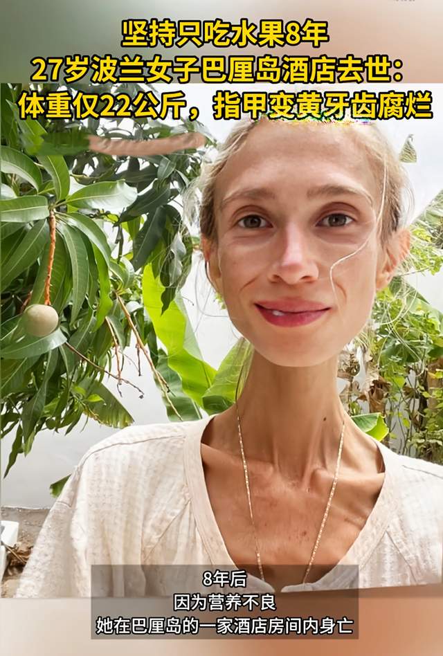 然后,她就“逃离”了。逃离家人,去西班牙,去巴厘岛,想着“新生活”、“数字游民”、“健康网红”。听着多美好啊,是吧? 结果呢? 到头来,还是一场空。在巴厘岛,连那些“同行者”都看不下去了,觉得她太瘦了,劝她去看医生。但她呢? 坚持“只吃水果”的原则,拒绝一切治疗。
