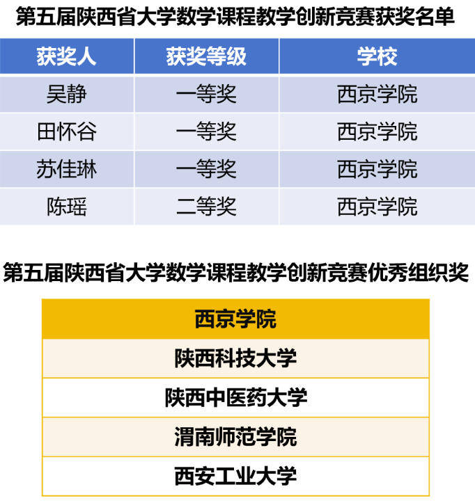 近日,陕西省大学数学课程教学创新竞赛获奖名单正式揭晓,西京学院计算机学院四位教师凭借扎实的教学功底与前沿的创新设计,在赛事中脱颖而出,斩获一等奖3项、二等奖1项,获奖等级和数量均位居全省高校前列。同时西京学院荣获本次竞赛的“优秀组织奖”,体现了学校整体对数学教学创新的高度重视。这沉甸甸的荣誉,不仅是对获奖教师个人教学能力的认可,更是西京学院近年来持续深化教学改革、着力提升教师专业素养的集中体现。