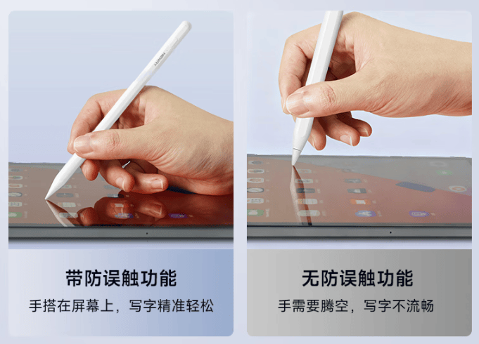 有一些电容笔没有给我们配备全屏防误触的功能,这样则使得我们书写时十分麻烦。像我们在书本上书写时手部是自然贴合桌面或者笔记本上的,全屏防误触就是为了还原我们这种真实的书写体验,即使我们把手帖在屏幕上也不会出现笔触不灵敏的情况。没有全屏防误触的功能,我们想还原真实的书写体验,就只好去佩戴防误触手套,使用步骤就变得麻烦起来。所以,建议在选购时一步到位,为了良好的书写体验,直接选着全屏防误触的电容笔。