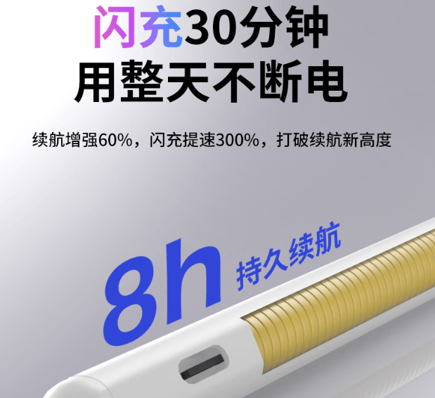 在我们进行长时间的书写和绘画等工作时,续航功能就显得尤为重要了。如果电容笔的续航能力不佳,那么在关键时候则不能发挥它的作用,需要用到它时却出现电量不足的尴尬情况。为了能够满足大家的日常的使用时长需求,建议在选择续航不低于8小时的电容笔。