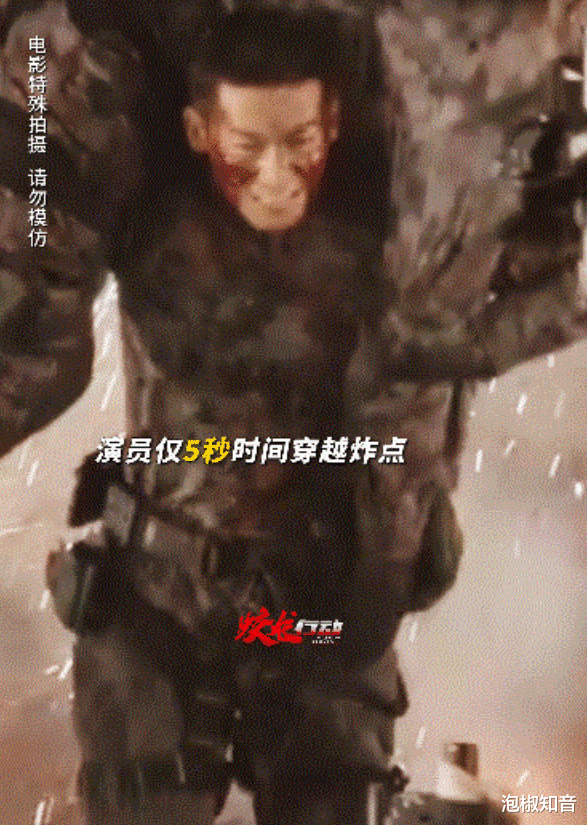 韩骁背着孟闯冲出火海的那场戏,20米的距离,就有着50个爆炸点,现场炸起的火焰都高达十多米,而留给演员的时间就只有五秒。