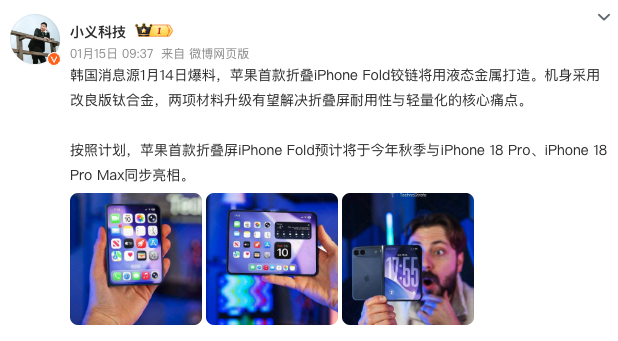 不过今年这种情况应该能大大好转了,之前只有OPPO Find N5等极少数机型可以做到无感折痕,有爆料说苹果买了OPPO Find N5拆开研究,并做了不少样品,都发现折痕平整度很难超过它。而今年除了三星 Z Fold8疑似将用上新技术做到无折痕之外,近些时间消息满天飞的iPhone Fold网传也将做到无折痕,甚至铰链还可能采用液态金属打造,提升耐用性。