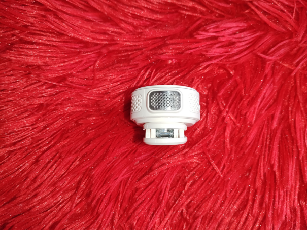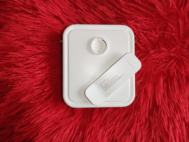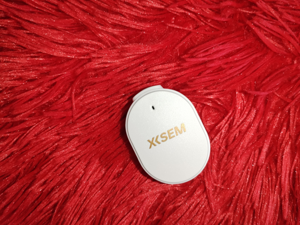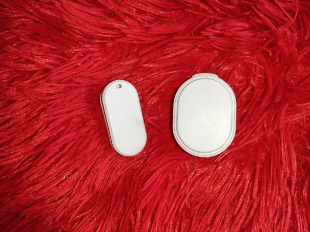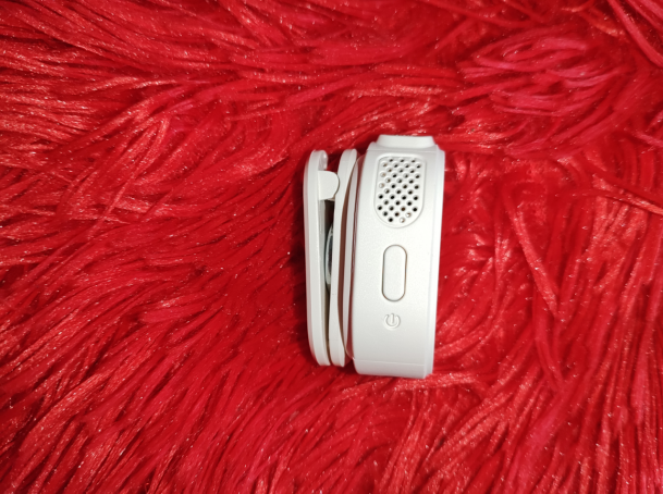 西圣XISEM-BEE小蜜蜂扩音器的无线麦克风发射器采用了小体积纽扣式的设计,仅有硬币大小,椭圆形外观,正面设置了电量的指示灯,背面为固定的衣夹,并采用了磁吸的分体式设计。