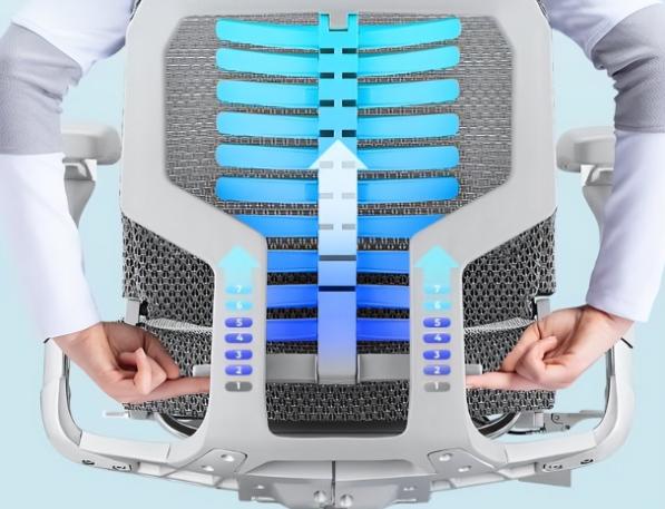 支撑度:三分区浮翼腰托支撑力很强,支持上下、前后调节,并带自动追腰功能,无论正坐或随意靠,腰椎都能得到紧密贴合,保证久坐时腰背稳定。