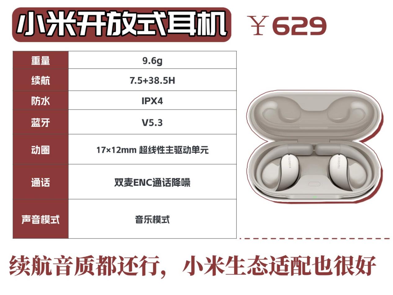 小米的耳机只推荐给小米生态用户,它跟小米设备的适配性确实好,连接快、切换顺,用起来省心,但音质、防漏音、便携性都很普通,629 元的价格也不算便宜,要是用的是其他品牌的手机,真的没必要选它,同等预算能买到表现更好的款式。