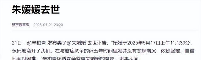 辛柏青用最沉痛的笔触,向世界宣告了爱妻朱媛媛的离去。