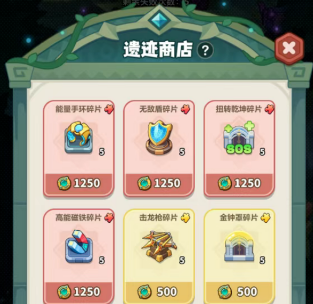 :通关可领取通关宝箱,随机获得多种机关、遗迹币和金币等奖励。遗迹币可在遗迹商店兑换指定机关、恢复药水等道具,每周前几次机关兑换享有较低折扣。通过每个奖励等级的第 3 关和第 6 关,可获得丰厚的首通奖励。战斗要点