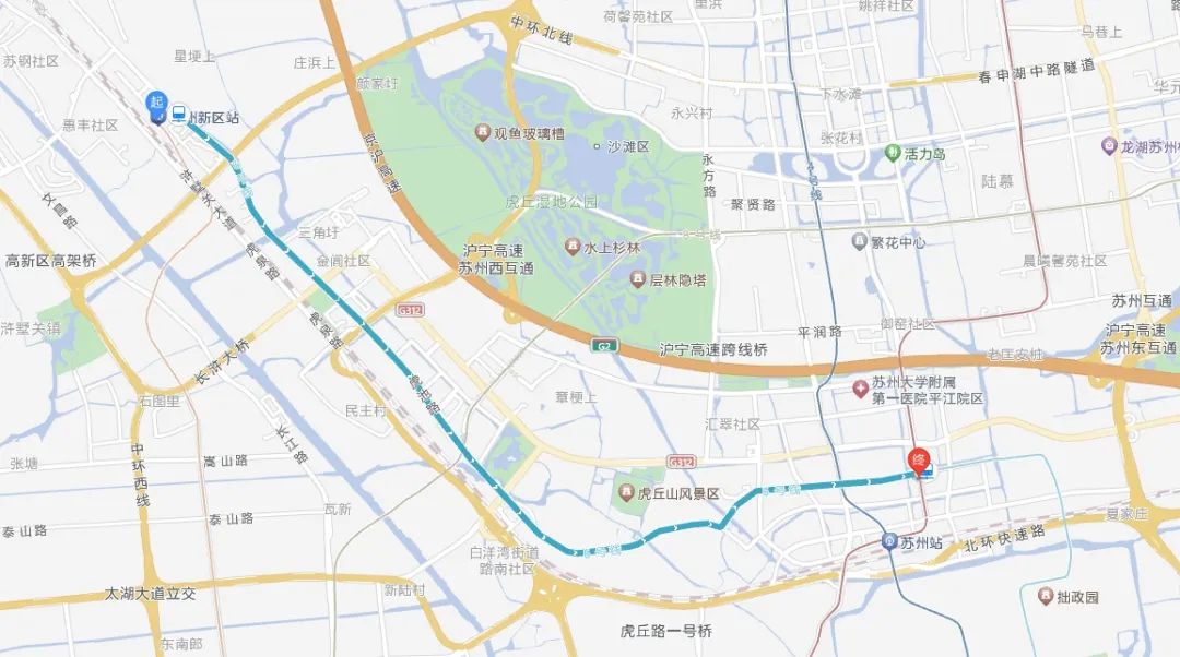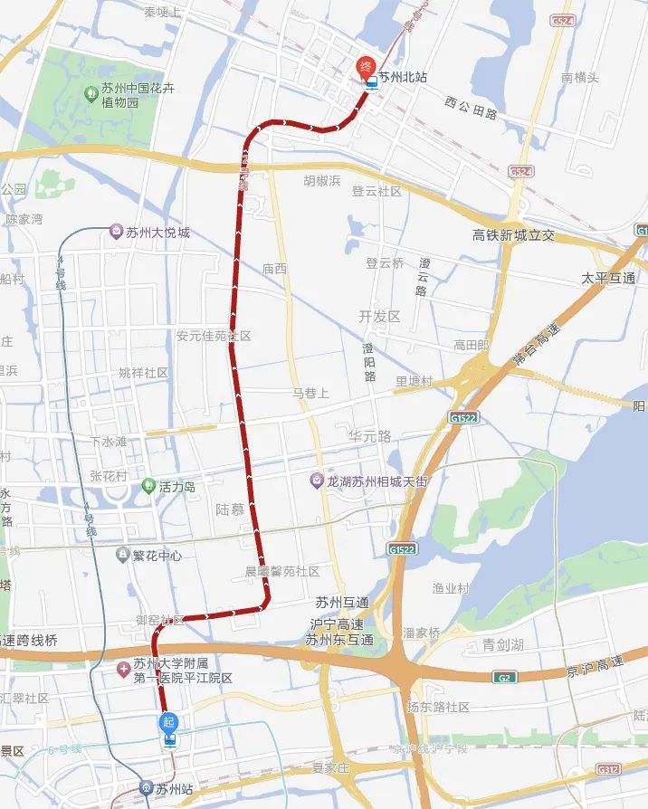 苏州地铁6号线于2024年6月29日开通运营,标志色为浅蓝色,苏州新区火车站至平河路站段,历经10个站点,长约10.9千米,线路从苏州新区站站前广场出来,沿着城际路、虎池路、虎阜路、平河路建设,与2号线在平河路站换乘。