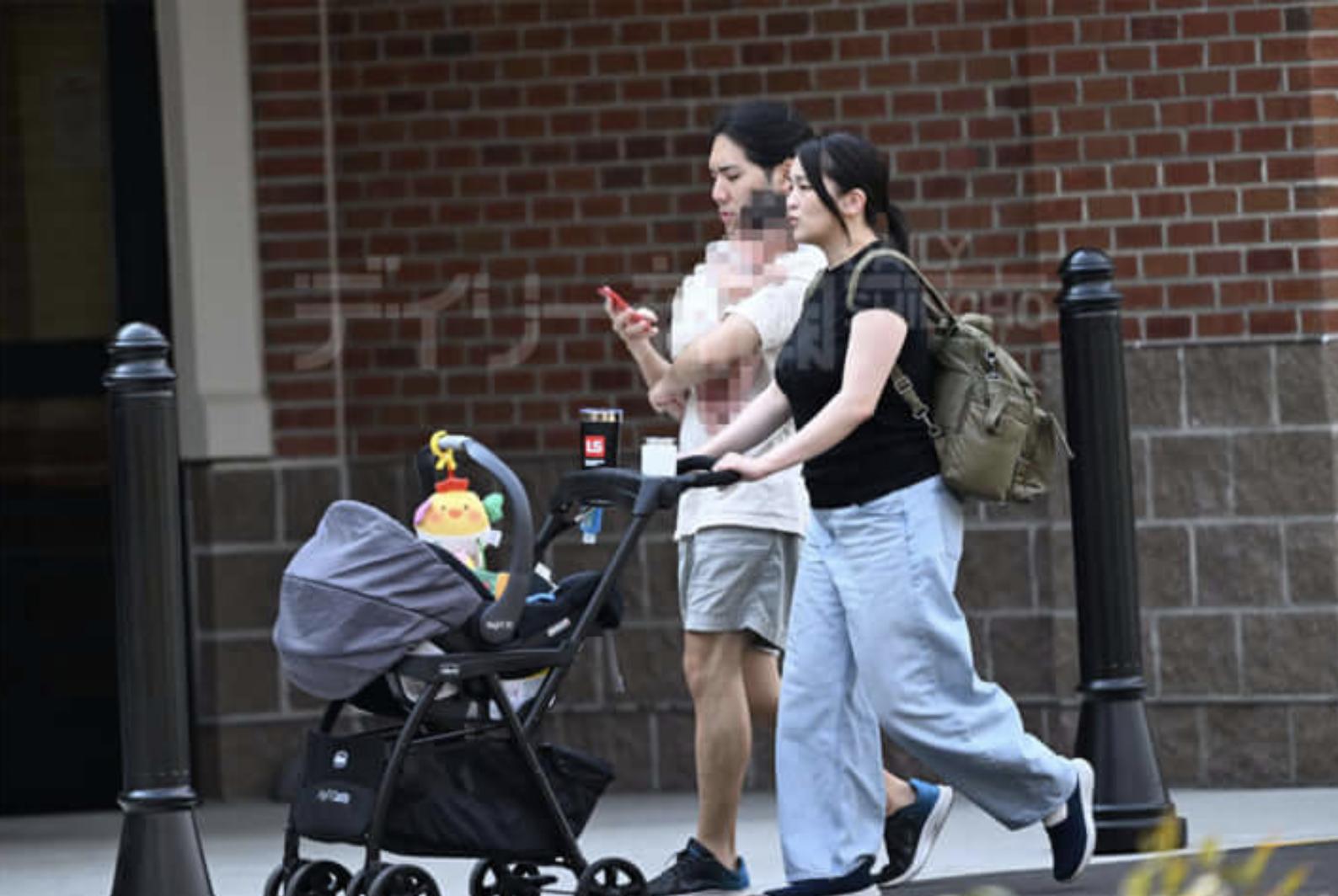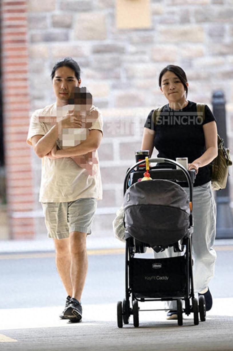 自从真子5月份生了小孩,小室圭就化身幸福奶爸,两人经常带娃一起出门。