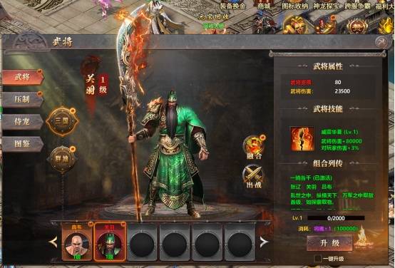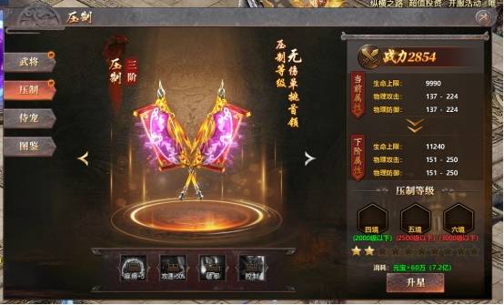 6、压制等级:升级武将系统中的压制,可压制更高等级的怪物,无伤刷怪效率大增。