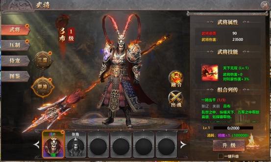 2、武将升级:获得武将后,升级武将提升其属性,可以增强其战斗表现。
