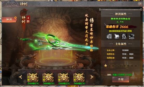 2、提升神剑可对更高等级怪物造成压制,提升玩家杀怪效率。