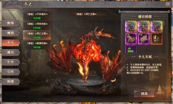 3、除了野外、魔祖、稀有等野外地图之外,还有无人抢怪,专属于个人的BOSS场景。