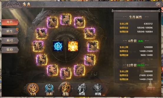 3、集齐生肖6件和12件,分别激活套装,获得额外属性加成。