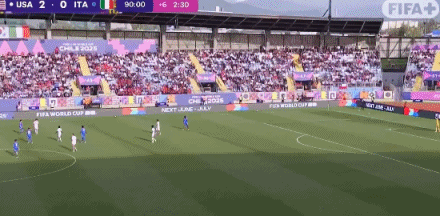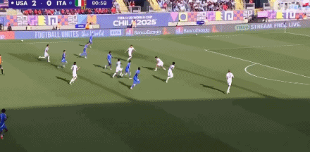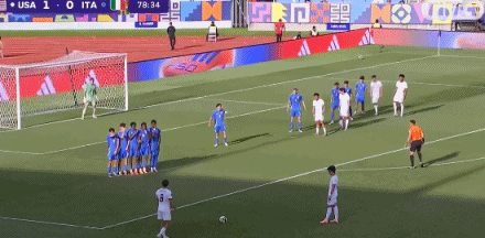 比赛第79分钟,再下一城!察基里斯任意球直接破门,U20美国2-0意大利U20
