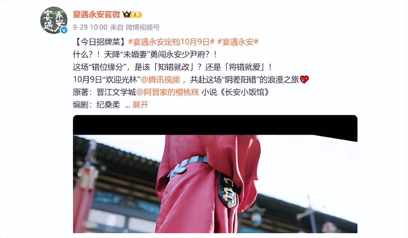 不过,这两部剧还没来,倒是《宴遇永安》抢先定档,将于10月9日鹅厂开播。