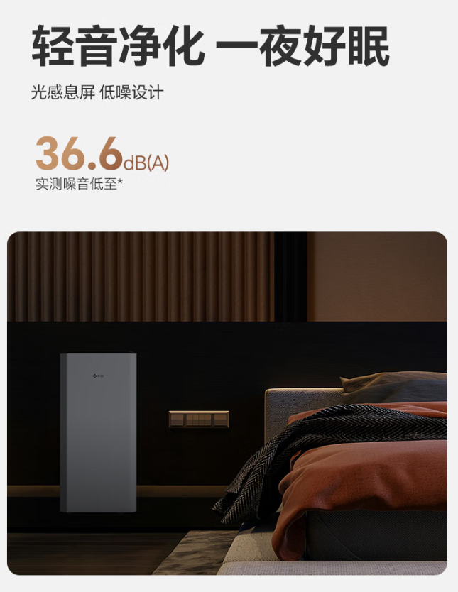 在噪音控制上,小白3.0做得非常出色。睡眠档时,它的运行声音极其轻微,只有36.6分贝左右,几乎可以忽略不计,完全不会打扰到休息。并且它配备了光感传感器,夜晚会自动熄屏,没有恼人的灯光干扰,能让你拥有一个安稳的睡眠环境。