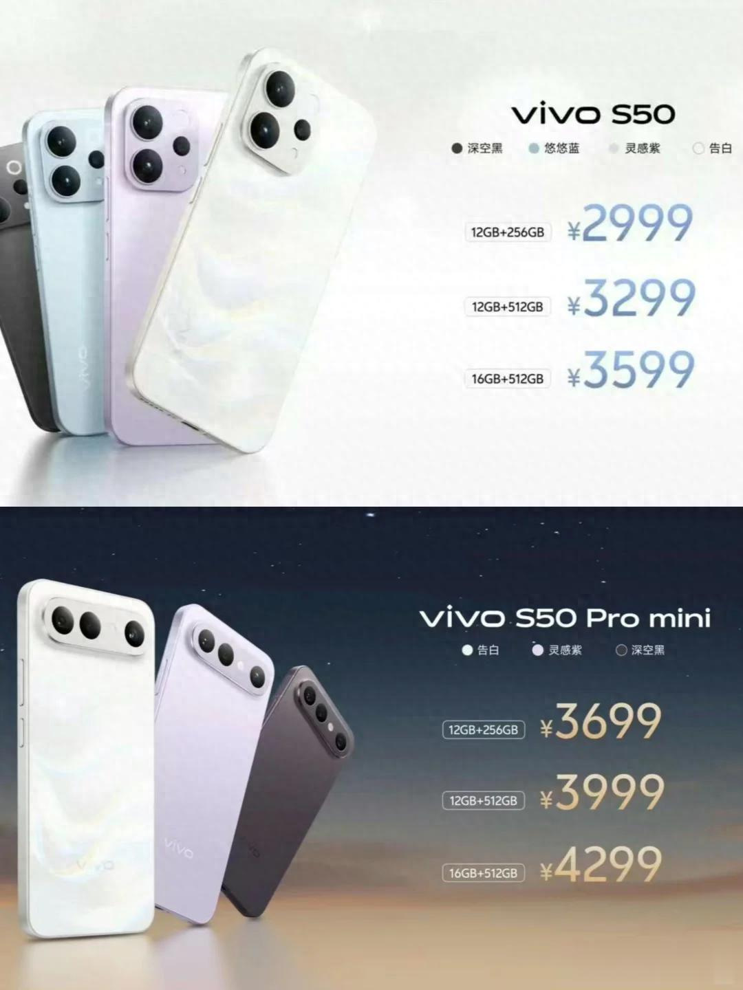 vivo S50 Pro mini:12+256G 3699¥、12+512G 3999¥、16+512G 4299¥
