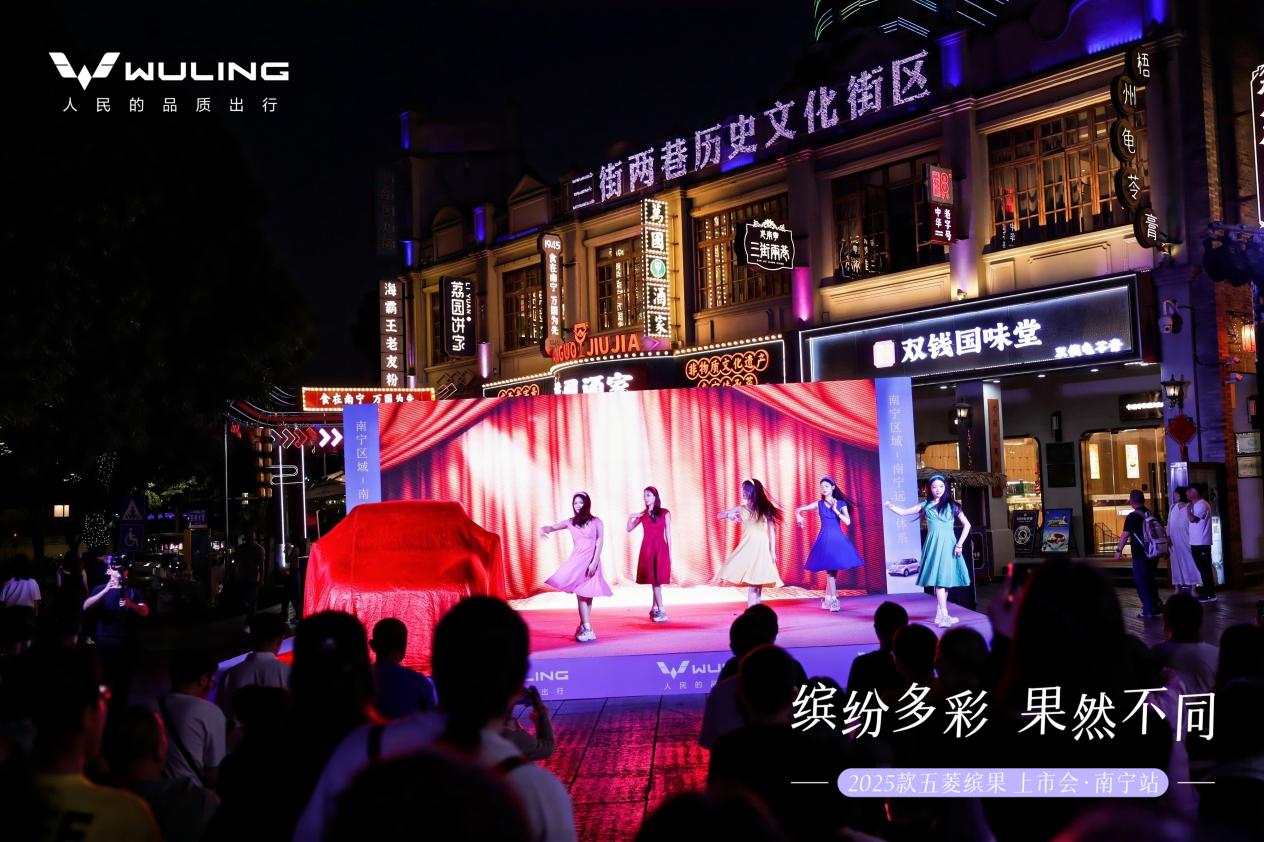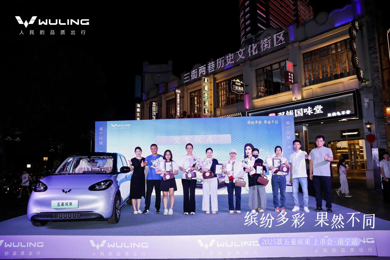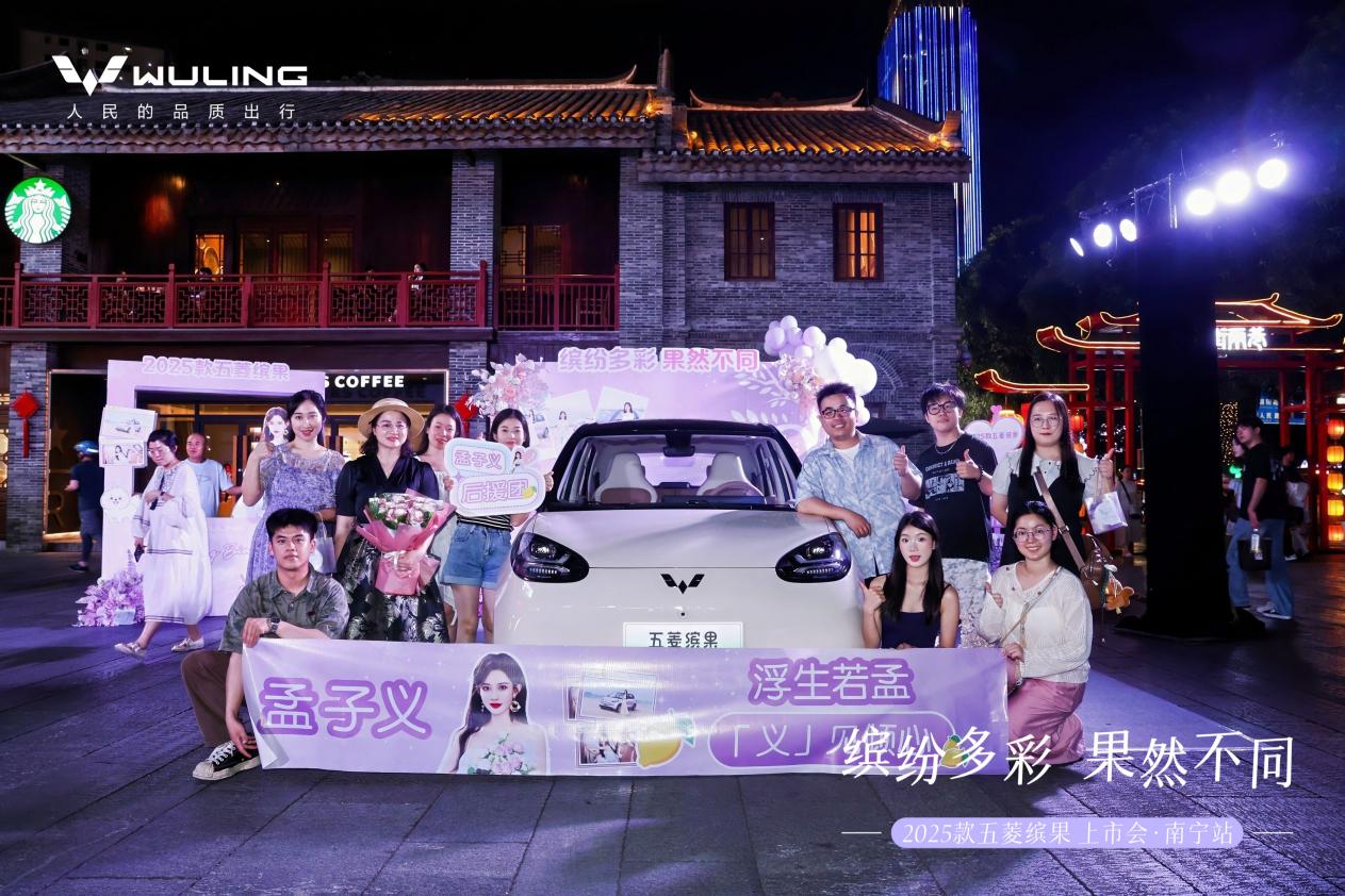 4月20日,备受瞩目的2025款五菱缤果在南宁三街两巷历史文化街区隆重上市,以“缤纷多彩 果然不同”为主题,吸引了五菱新老车主、众多汽车爱好者、媒体记者以及孟子义粉丝团的参与。上市会由南宁远勋体系精心呈现,为到场嘉宾带来了多种用车场景的体验。