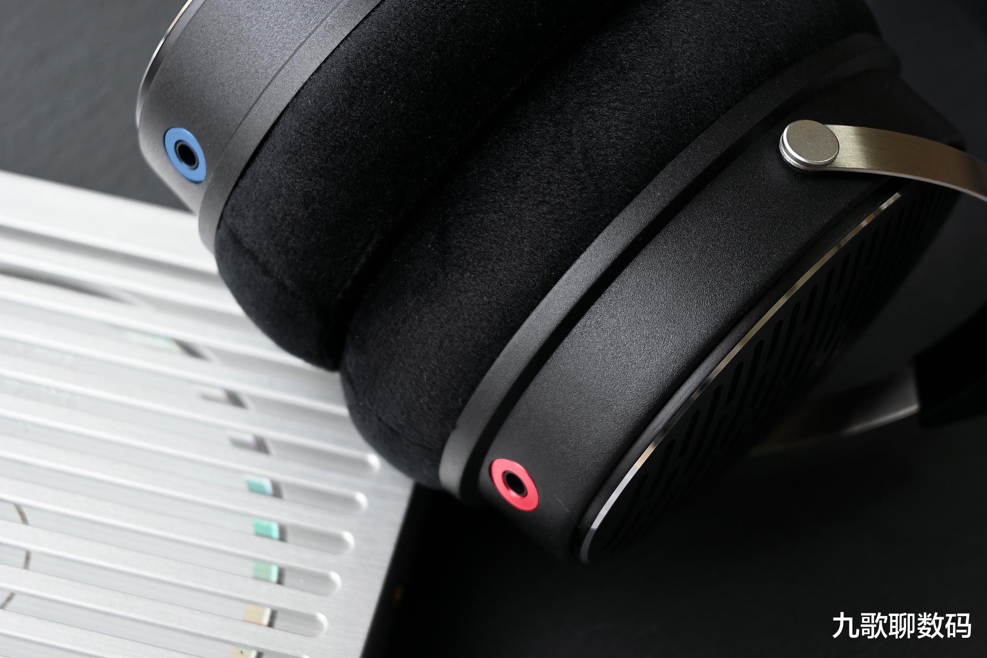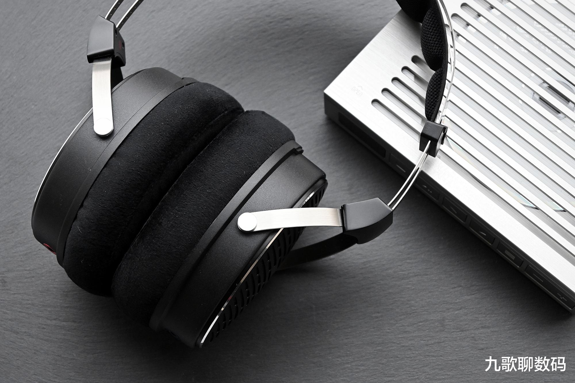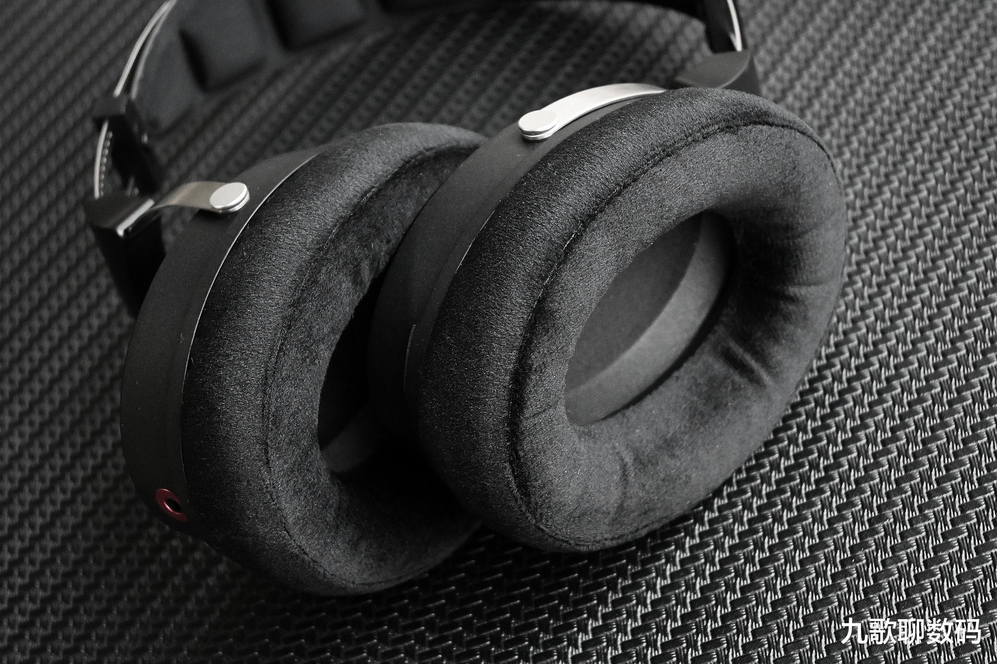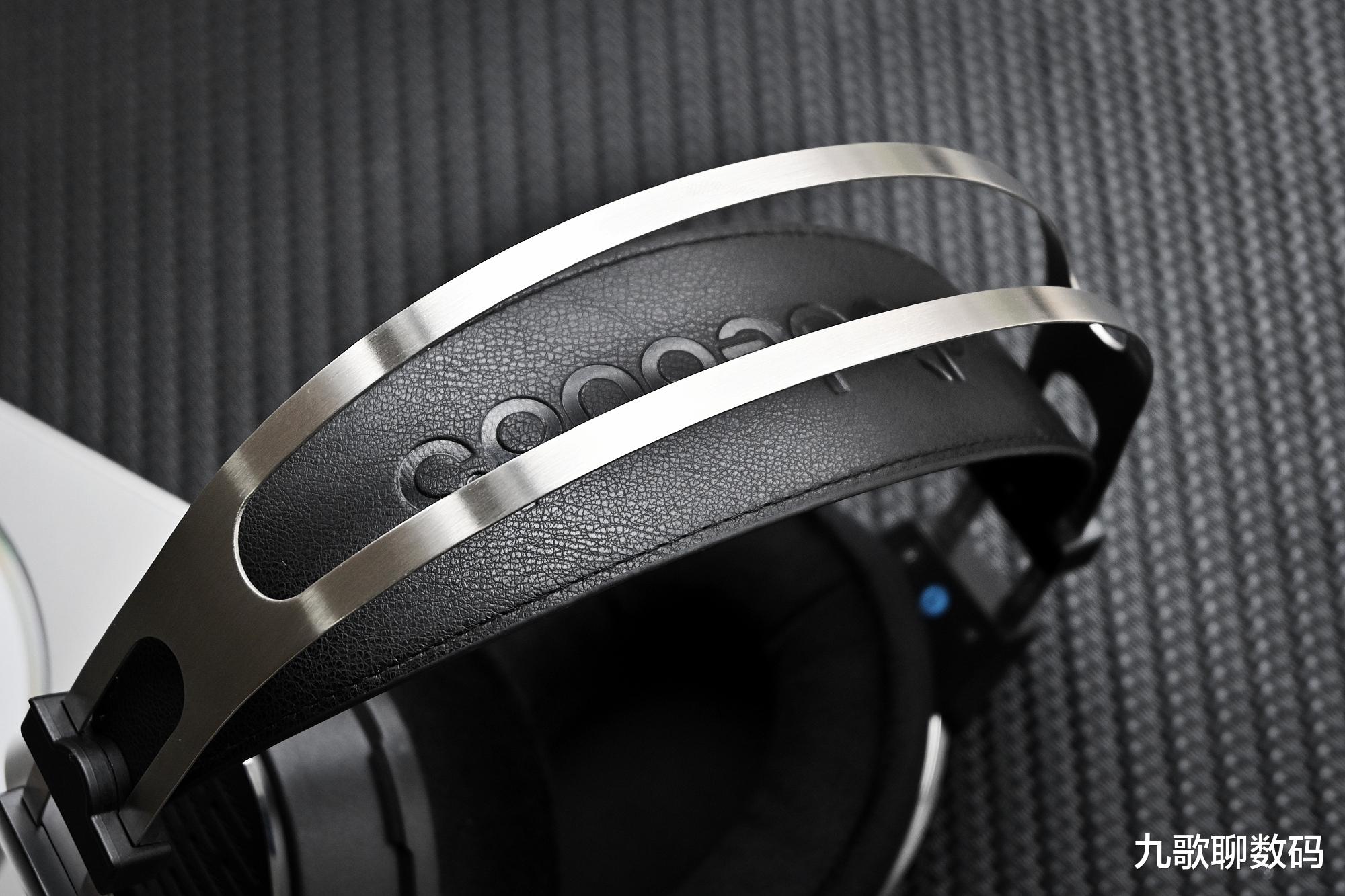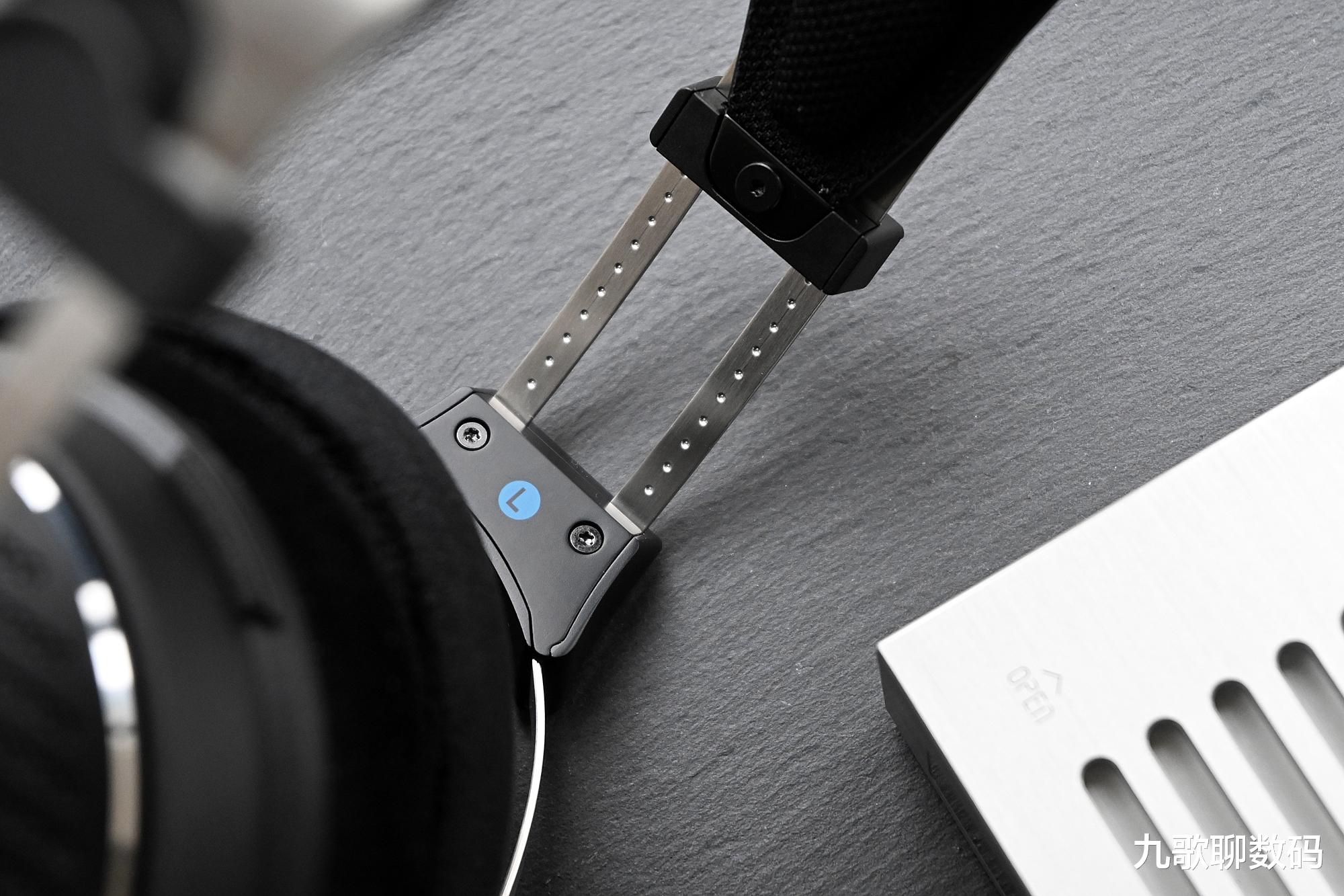 耳机头梁采用了滚珠滑轨式设计,中间镂空的轻量化设计让佩戴更为轻盈。银色的钢骨如同一抹亮色,与哑黑的机身形成了鲜明的对比,也使耳机不至显得过于呆板。如果是银色版本应该会更为张扬些。