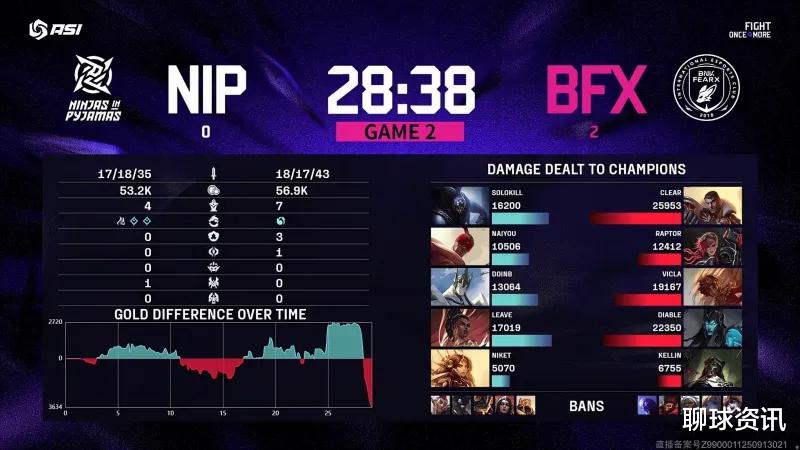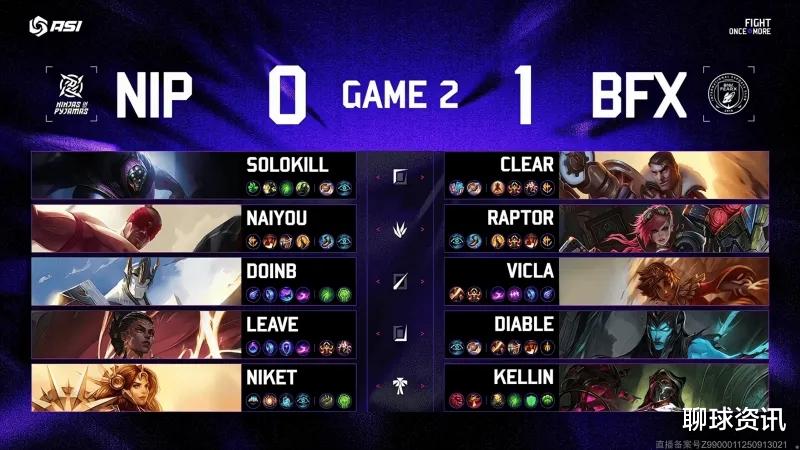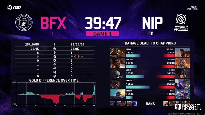 NIP在25分钟经济领先时强打大龙,但被BFX抓住机会0换5团灭,直接一波结束比赛。
