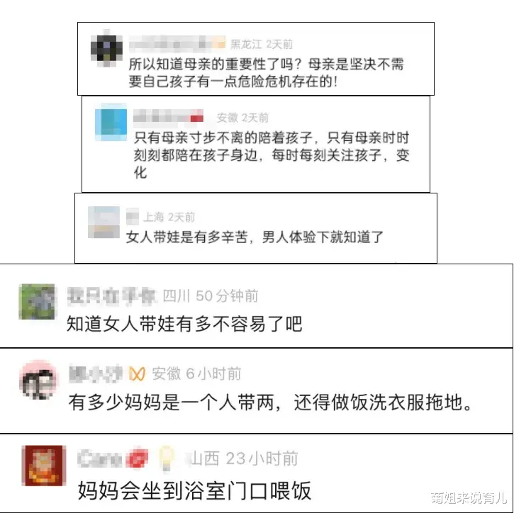 但在这场讨论背后,更沉重的是女性带娃的辛苦与不易。传统观念里照顾孩子成了女性 “专属职责”,可女性并非天生会带娃,只是出于对孩子的爱,默默承担起这份责任。