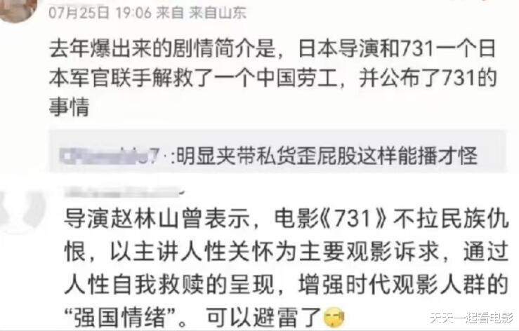 还有网友翻出导演赵林山以前的话,说他强调这片子不拉仇恨,突出人文关怀和人性自我救赎特征,增强观影人群的强国梦……