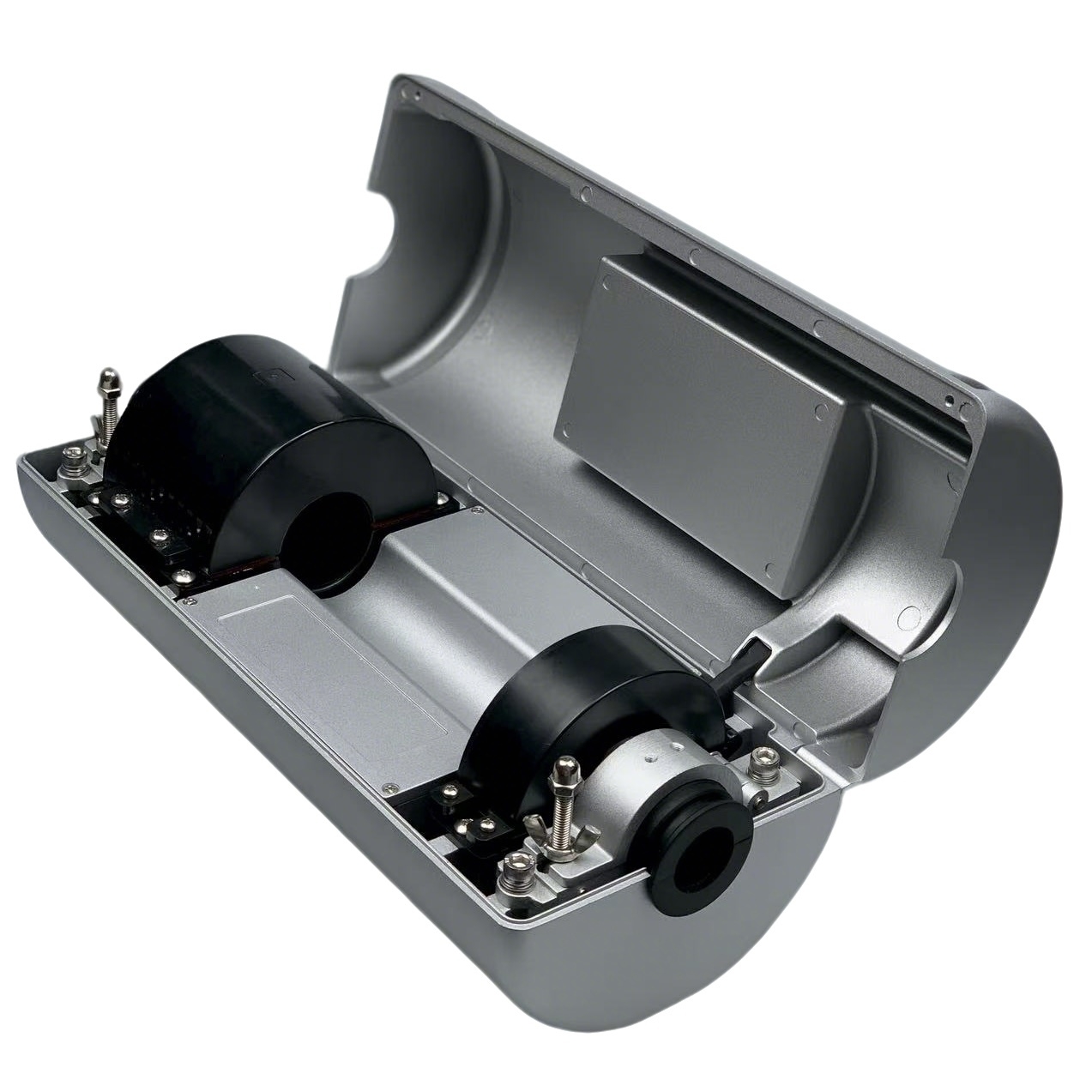 装置采用高度集成的一体化结构,搭配坚固的铝合金外壳,为开启式设计,专门适配35KV及以上电压等级的架空输电线路。供电方式上,通过电磁感应原理获取安全电源,并辅以光伏板与内置电池辅助供电,确保在野外复杂环境下持续稳定运行,无需额外铺设供电线路。