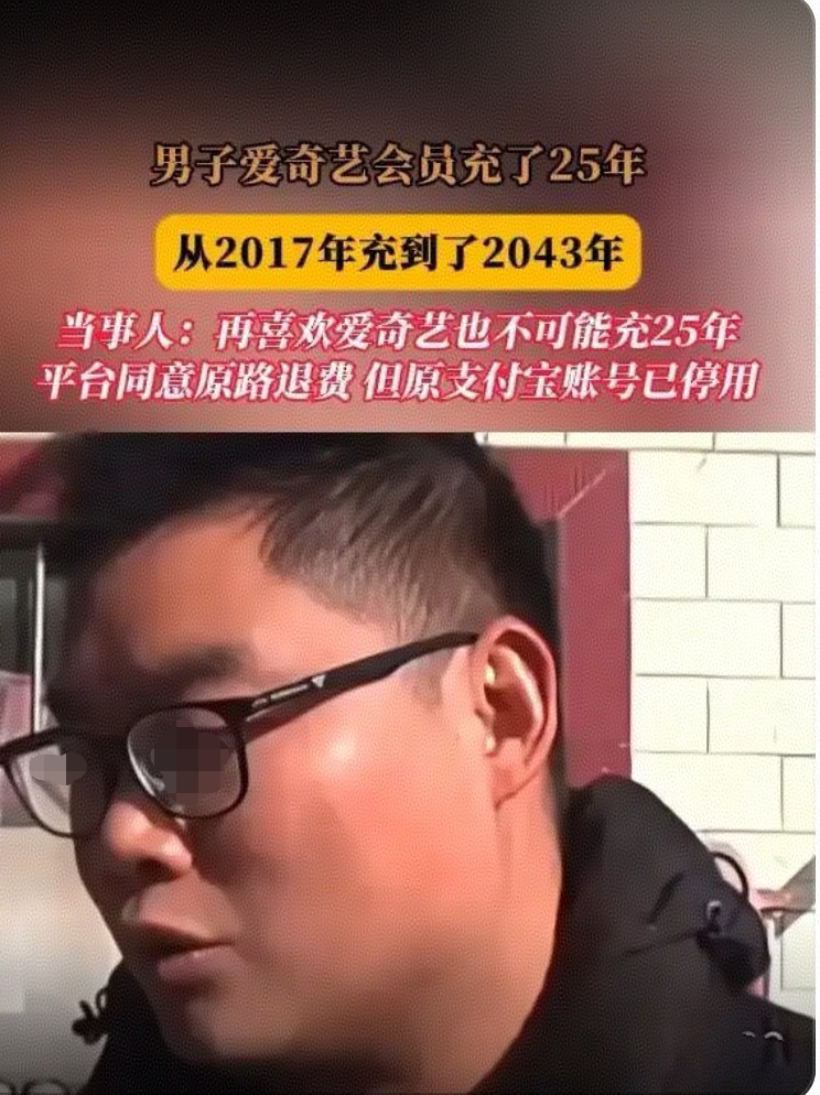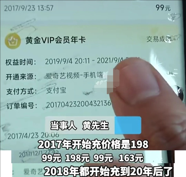 谁后该事件黄先生发到在网上引起了热论,记者也来采访黄先生说到:“我是再也这么喜欢爱奇艺,我也不可能充20多年会员,我这个爱奇艺会员一下充到2043年9月22号,充个会员充25年,
