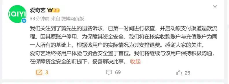 不过还好,这件事的结局还算令人欣慰,随着舆论的发酵,爱奇艺终于松口,表示将启动退款流程,并在核实身份后灵活处理。