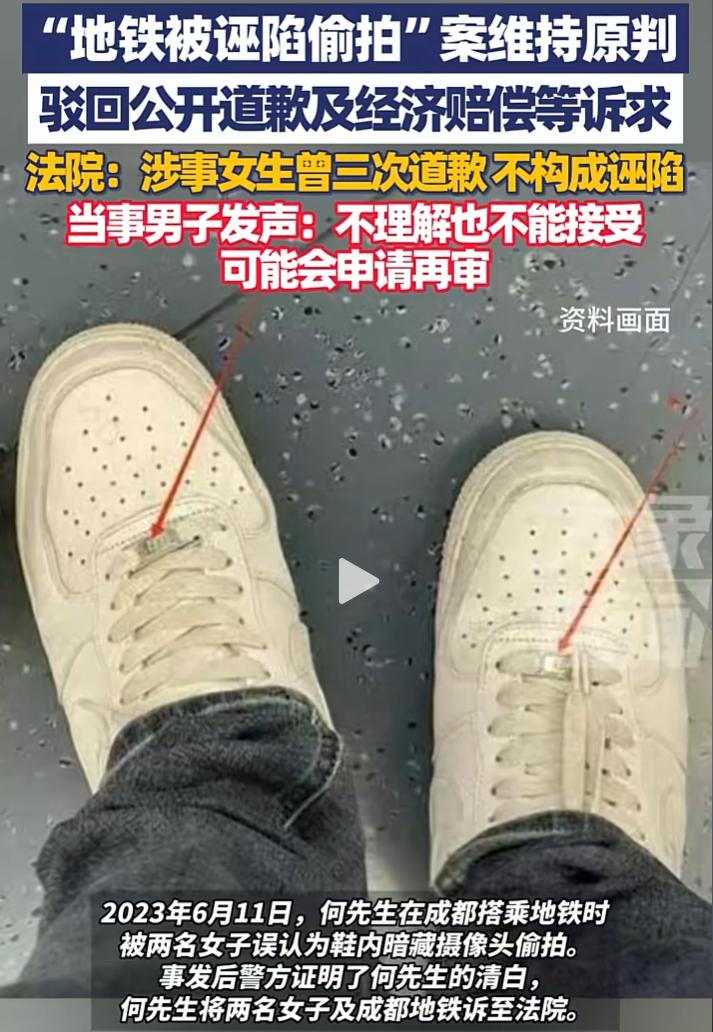 事情是在2023年,由于何先生的鞋子有一个金属块反光,被地铁上的两名女子怀疑鞋面藏有摄像头,而何先生的曹遇也是让他百思不得其解,小小的金属片就找到怀疑,被带出车厢,还要自证清白,最后的结果也是一发不可收拾,何先生在2023年底辞职、遭遇分手等,他也是为了得到一个道歉而起诉成都地铁,为什么自己清清白白的会遭到不公平的对待?