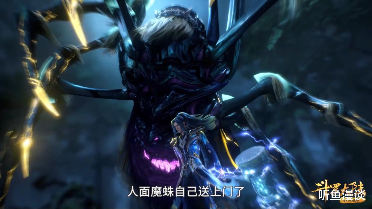 第六只蜘蛛更是一只变异种。嘉陵关大战中途停战期间,唐三再入星斗大森林寻找魂环。在他刚刚吸收完暗魔邪神虎魂环的时候,一只变异人面魔蛛皇突然向他发起了袭击。唐三也想试试刚获得的能力,于是打出昊天锤第四魂技——暗魔邪雷怒,结果一招就给这只五万年的人面魔蛛皇给秒了。随后,它就化作唐三昊天锤第五魂环。