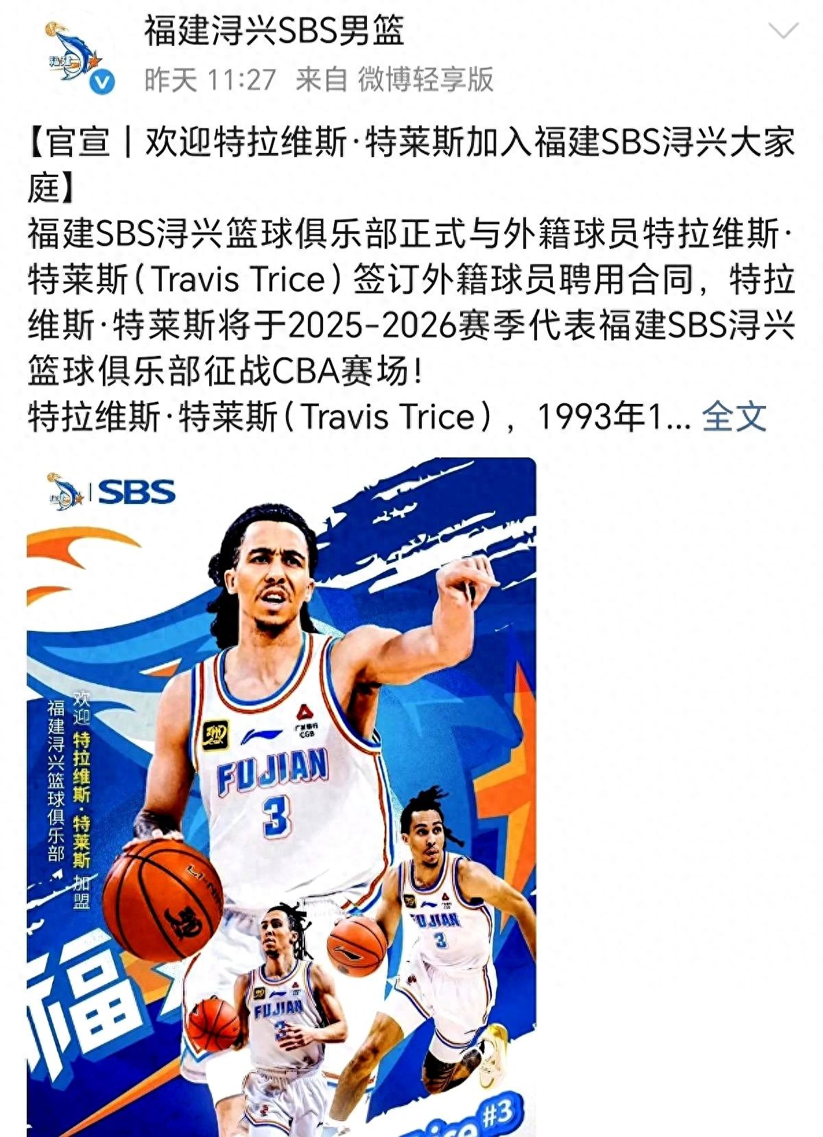可偏偏就在大家准备继续躺平时,球队突然甩出一张新牌:北控旧将特莱斯,官宣加盟。