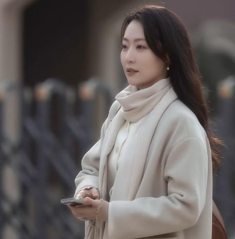 出场时穿着白大衣搭配围巾,长发披肩、身材苗条,一看就知道,是富养长大的女孩。