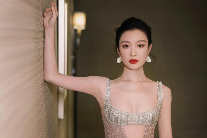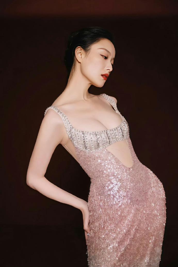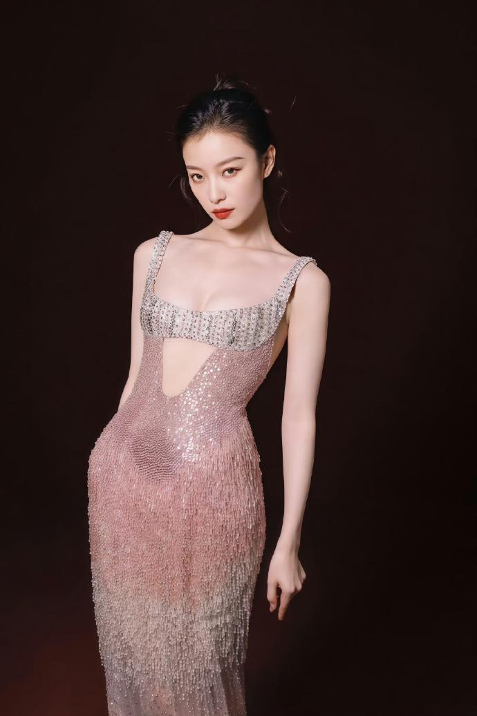 倪妮一袭粉钻吊带裙,把 “柔” 与 “艳” 揉成独有的松弛气场。裙身缀满细碎钻粒,粉调渐变裹着鱼尾线条,方领与腰腹镂空漏出纤薄骨相,冷调钻光衬得肌肤更莹润;高盘发漏出的耳饰与腕间银链呼应,每一处细节都踩着 “精致与随性” 的平衡点。