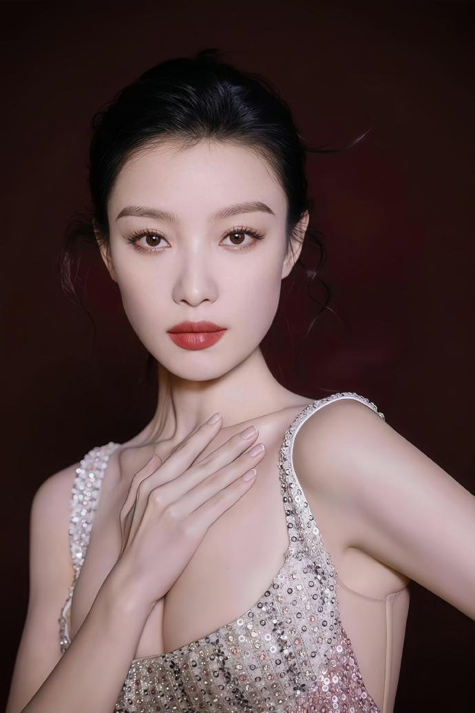 她或手持话筒站在暖调背景前,或侧身倚在暗幕旁,指尖轻搭肩颈的弧度自然又舒展 —— 没有刻意凹的性感,是钻裙的柔裹着骨相的冷,是红唇的艳衬着神态的懒,连发丝轻扬的瞬间都漫着松弛的底气。