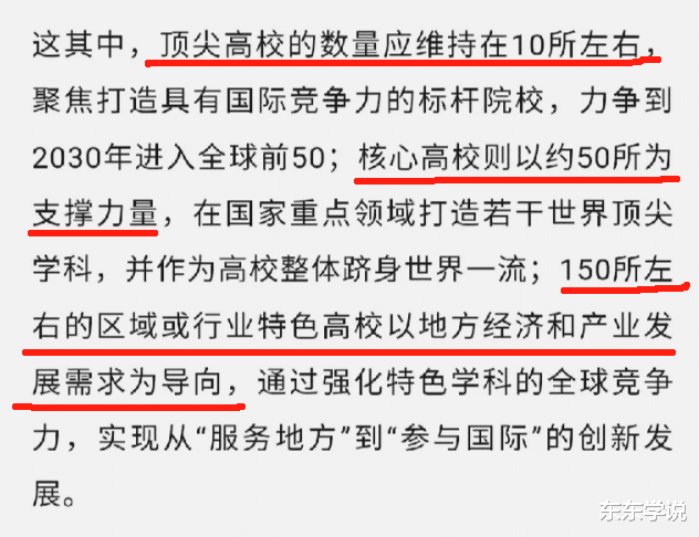 建设约50所高校,成为国内高校建设的核心力量;重度参与世界名校的竞争;剩下的150所高校建设成区域或者特色高校,努力的方西是在学科上参与全球竞争!