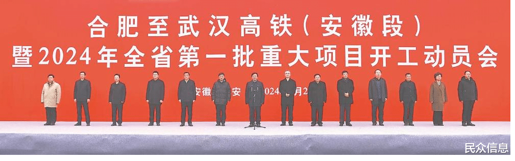 2024年1月2日上午,新年首个工作日,合肥至武汉高铁(安徽段)暨2024年全省第一批重大项目开工动员会在六安市举行。合武高铁安徽段新建正线166公里,总投资354亿元,新设六安北、金寨东、南溪3个车站,设计速度350公里/小时,合肥至武汉通勤时间将由目前1小时37分缩短至1小时。