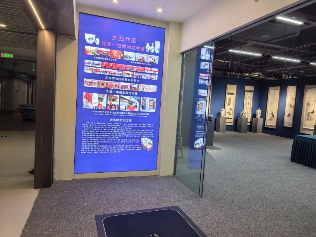 继河南博物院大翁中国画全国巡回展圆满收官后,大翁先生马不停蹄,于2025年12月1日正式启动大翁美术馆的筹建工作,选址景德镇国际陶瓷中心。从地址选定、展厅平面布局规划,到灯光调试、作品陈列,他事必躬亲,精益求精。尤为值得一提的是,他将近二十年“景漂”生涯的艺术感悟,凝练成百字箴言,镌刻于馆内醒目位置,既是自己的艺术座右铭,更成为美术馆的灵魂所在。“痴心问道契仙源,落笔惊开万邦知”,道尽他师法前贤的传承理念与艺术成就的深远影响;“以书法为骨,国画为魂,陶瓷为肉,纸上瓷上互通书画瓷合一”,则是他半生探索书画与陶瓷融合之路的生动注脚。