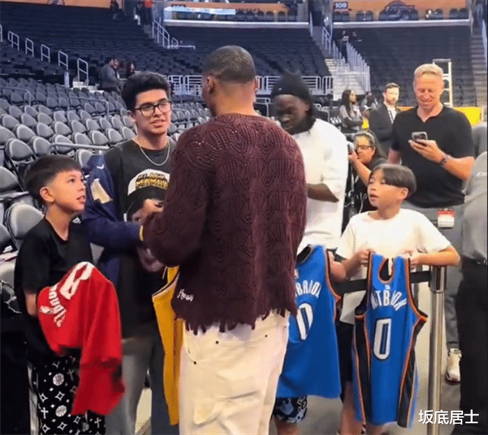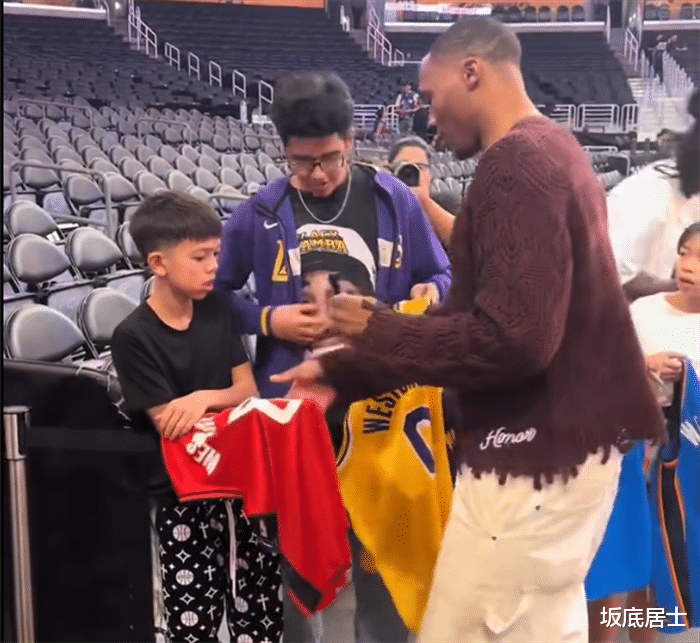 威少:我靠,我还以为是奇才球迷……或者是快船球迷……也或者是掘金球迷呢!你……这穿了一身黑,笔也是黑的,签上了也看不出来,就算签了吧!