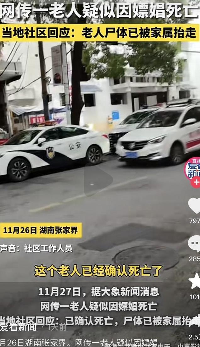 老人家可能泡着泡着没有抵挡住失足女的温柔乡,迷失了自己的道心,便和失足女发生了不可描述的画面,但不知道什么原因,老人死了,死在了嫖娼过程中。