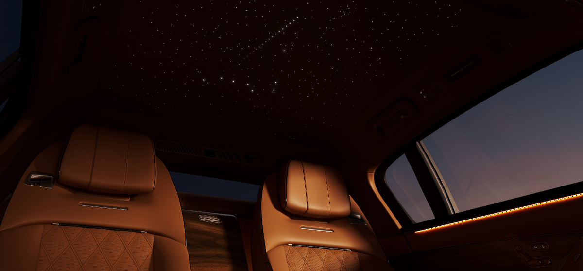 纵横星瀚大灯采用了独具匠心的水晶工艺,由近百个切割面精雕细琢而成,通过多层光学镀膜配合激光镭雕工艺打造出动静皆璀璨的效果,实现美学与功能的完美共融。尊界LOGO融合几何美学与奢华质感,中心线条设计灵感源于指挥家灵动的指挥轨迹,其中隐含了MAEXTRO字母,结合水晶切割工艺,折射品牌高端定位与尊崇风范。