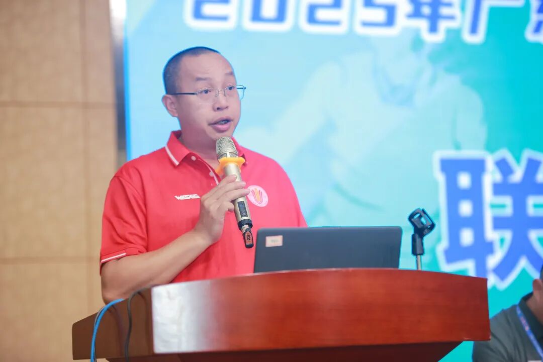 广东省教育厅体卫艺处二级调研员董业权介绍了赛事的筹备情况,已完成赛场设施调试、安全检查及食宿保障协调,制定了应急预案,确保赛事安全有序,同时,对各项工作的推进提出了明确的要求,强调以“公正公平”为核心准则,严守赛风赛纪,充分发挥赛事德育功能。