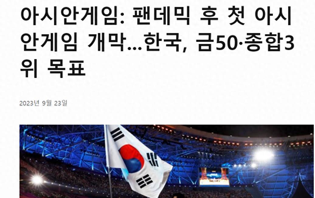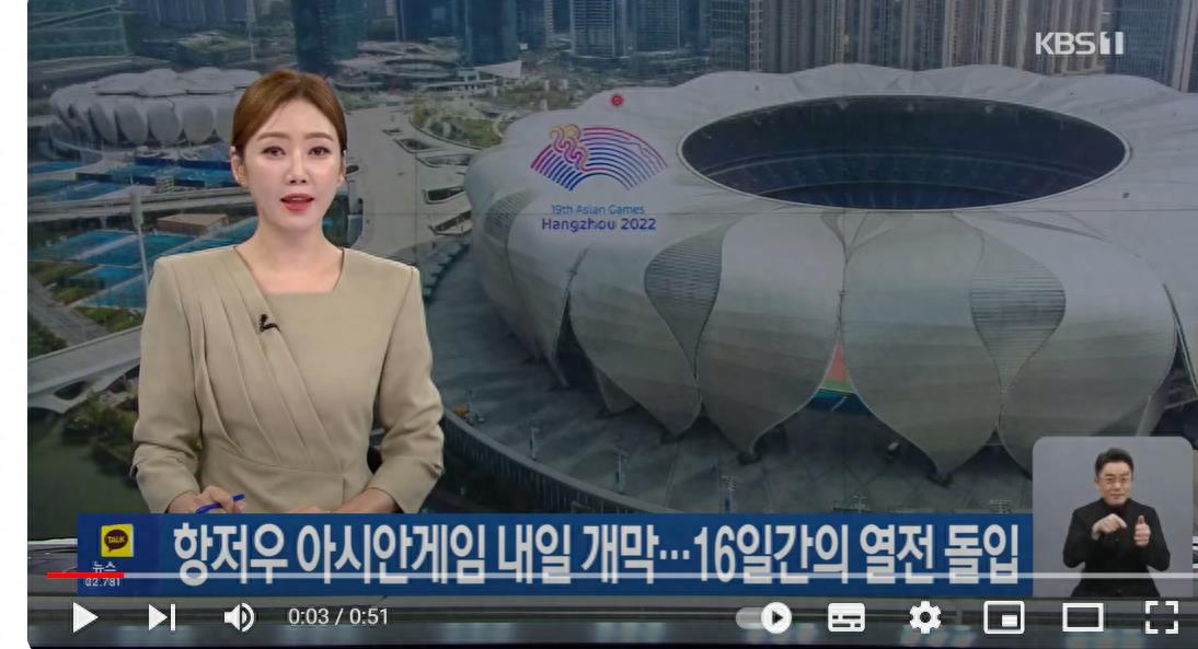 韩国:第19届夏季亚运会开幕。本次大赛将在中国杭州举行,从23日的开幕式开始,到下月8日为止,为期16天。当天的开幕式在杭州奥林匹克体育中心体育场举行,这里的莲花是杭州的象征。此次大会强调低碳环保大会,以数字方式体现了开幕式的象征烟花和圣火点燃,吸引了人们的视线。