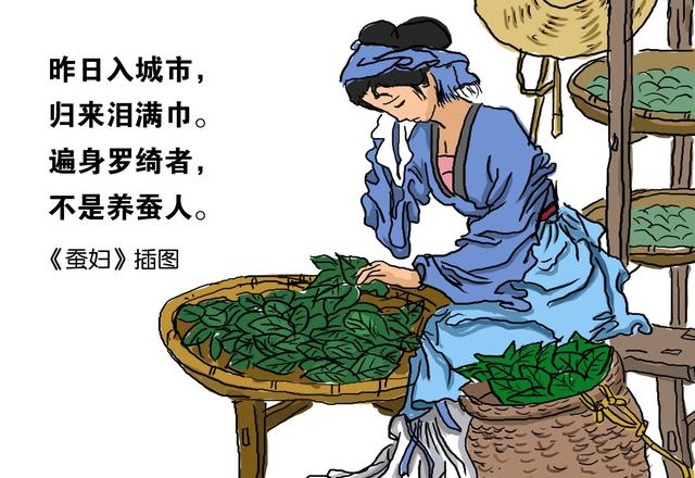 一位蚕妇昨天进城里的市场卖掉了蚕丝,回来的时候眼泪沾湿了汗巾。那些身上穿着绫罗绸缎的人,没有一个是养蚕的人。